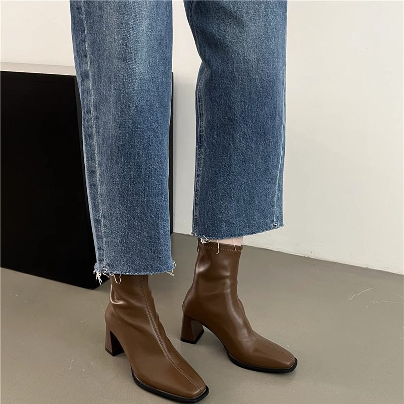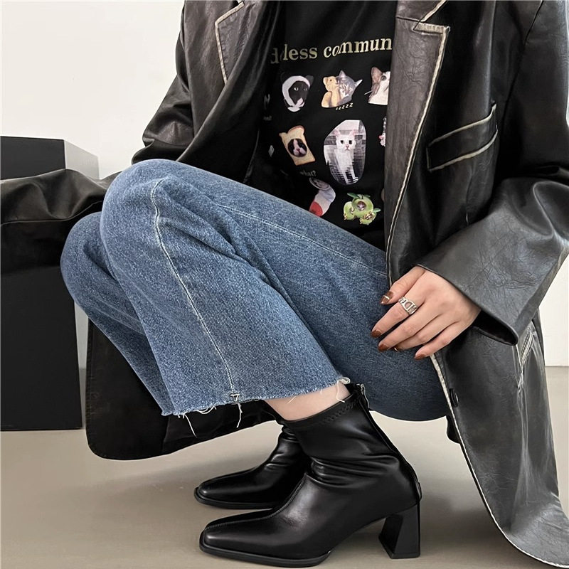 方头及踝单靴小码31 32 33真皮短靴女秋冬季时尚大码马丁靴41432