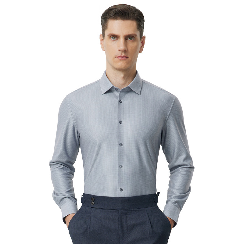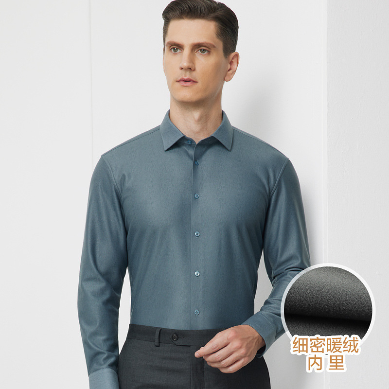 男士针织羽绒保暖衬衫冬季新款商务男式印花加绒加厚弹力长袖衬衣