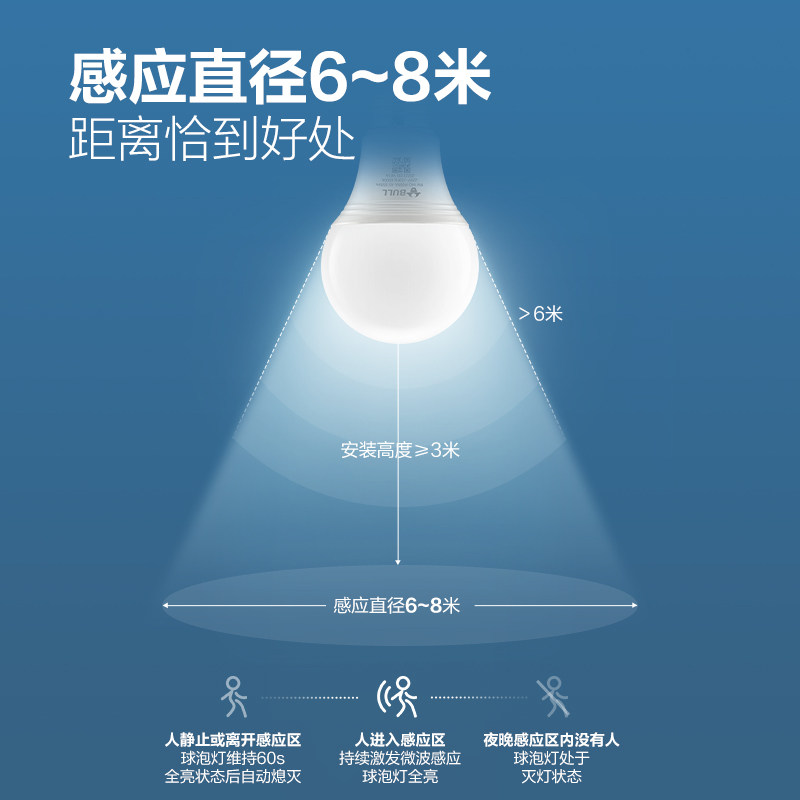 公牛人体雷达感应声控光控LED球泡灯自动亮楼道走廊节能替换灯泡