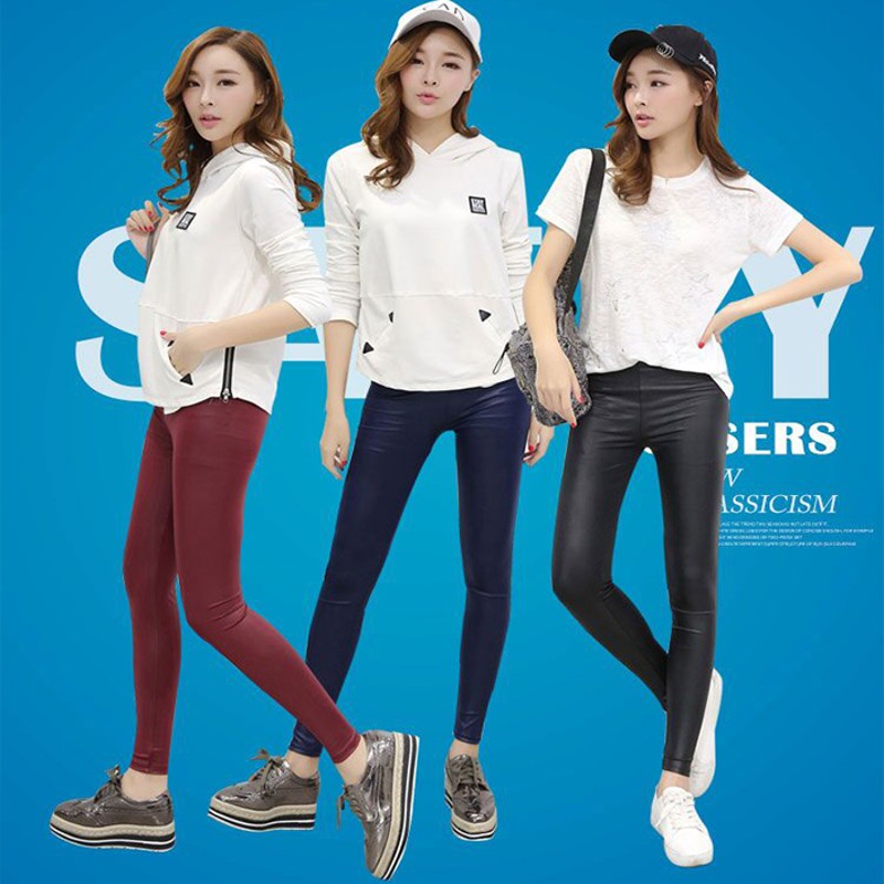新款仿皮打底裤外穿高腰薄款皮裤女黑色小脚长裤紧身弹力大码女裤
