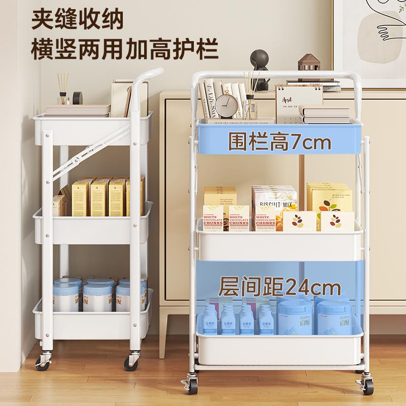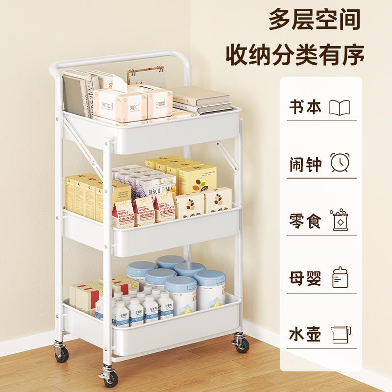 德国精工可折叠书架小推车置物架落地移动带轮零食架厨房收纳储物
