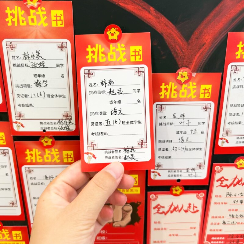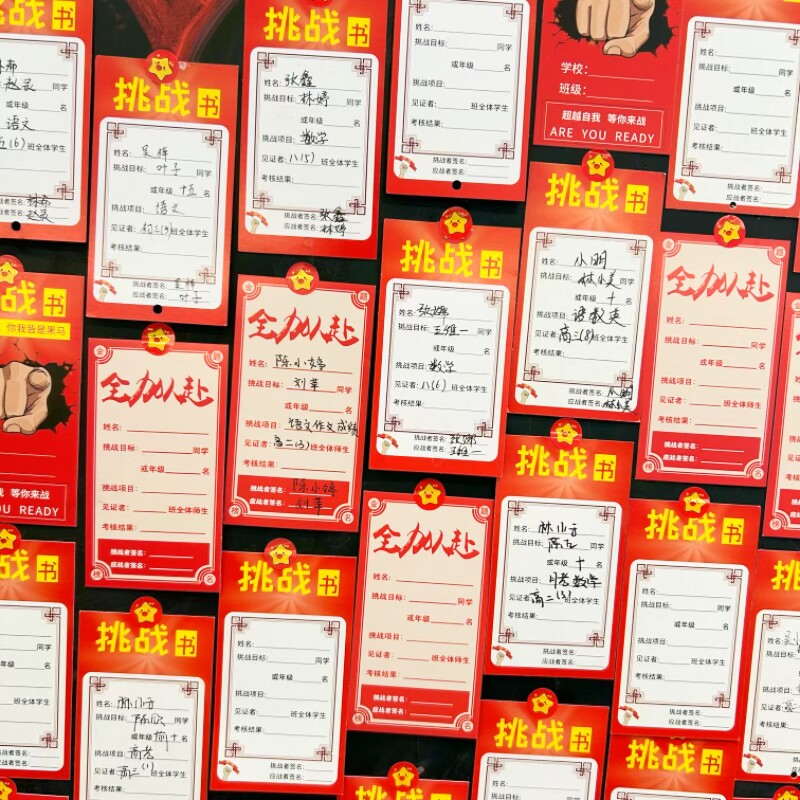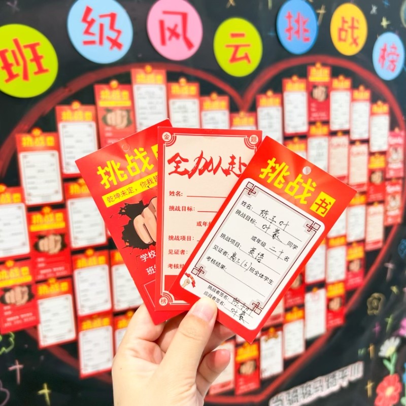 班级风云挑战榜教室文化墙布置心愿墙贴黑板装饰卡片学生应战书目标卡激励PK初高期末考试励志加油卡教师管理