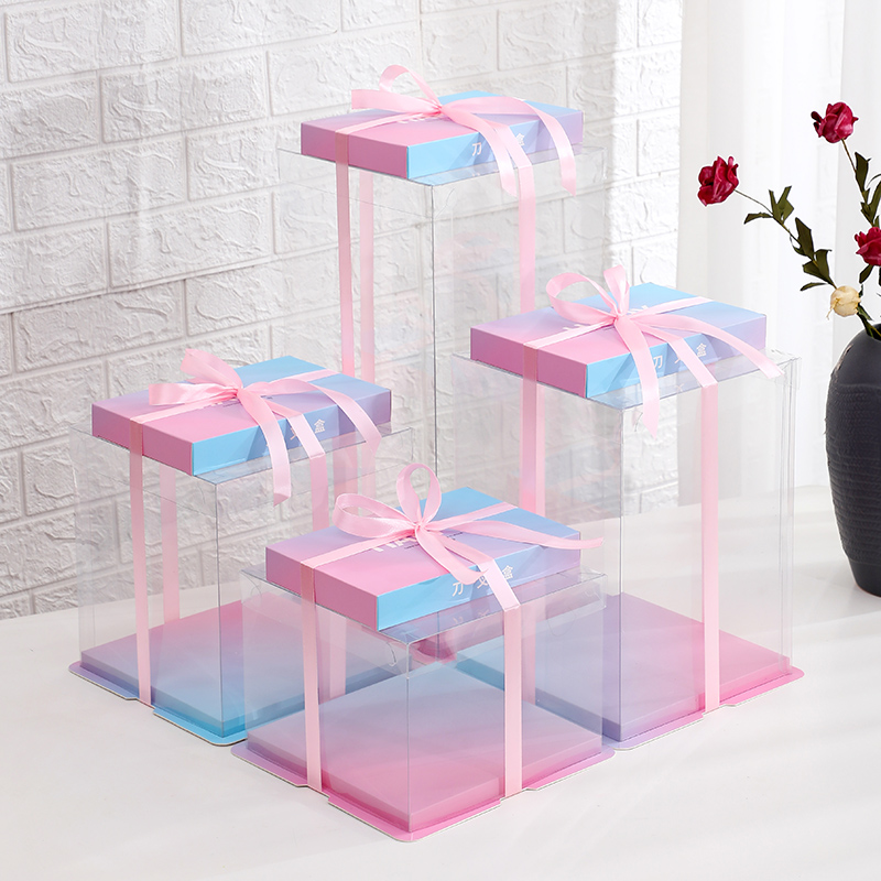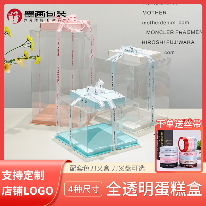 全透明生日蛋糕盒子包装6六8八10十12寸烘焙双层加高方形刀叉盒
