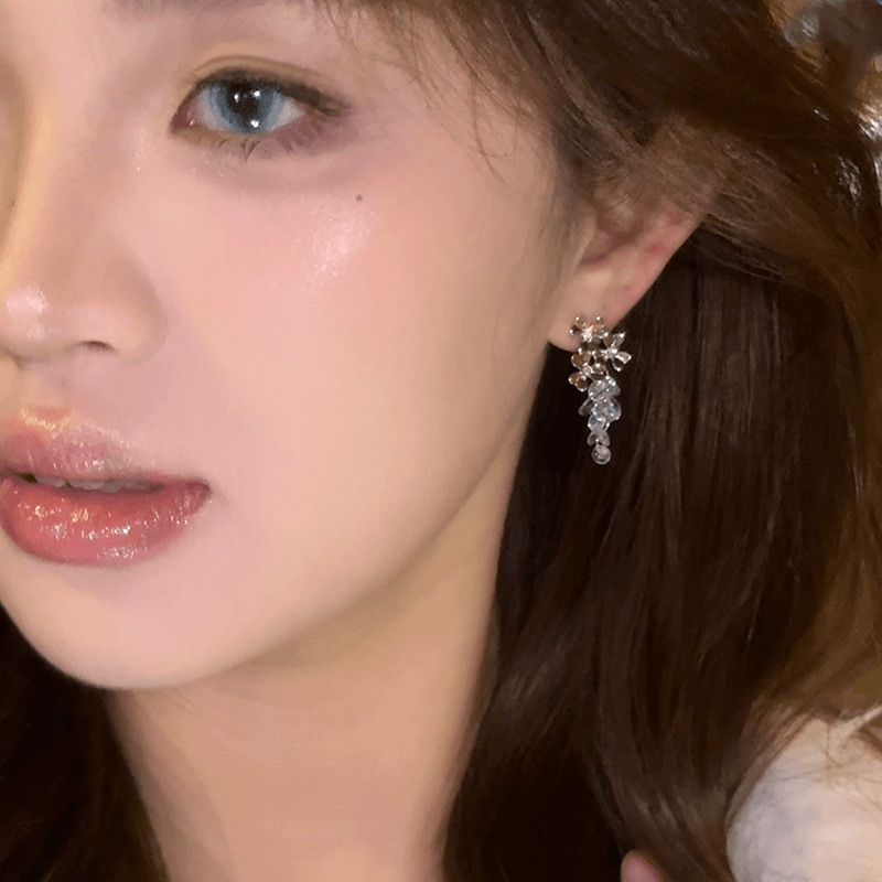 水晶葡萄三叶草流苏耳钉女2025新款爆款时尚高级耳环简约百搭耳饰