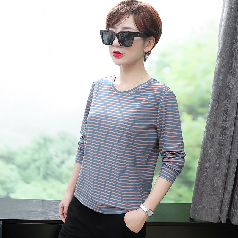 纯棉长袖t恤女中年妈妈春秋新款大码体恤宽松遮肚显瘦打底衫上衣