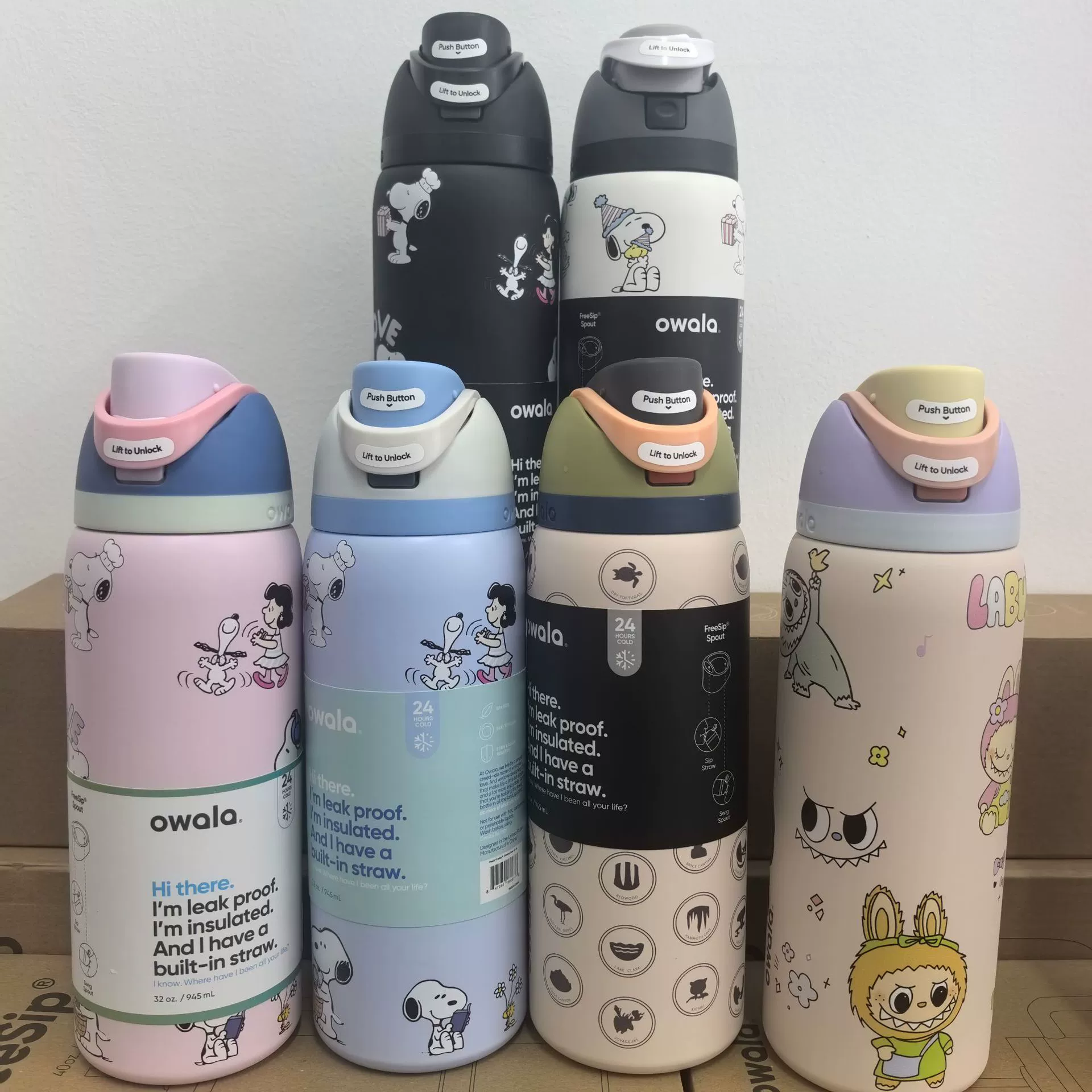 史努比水果杯跨境Owala同款保温杯便携运动手提水壶不锈钢大容量