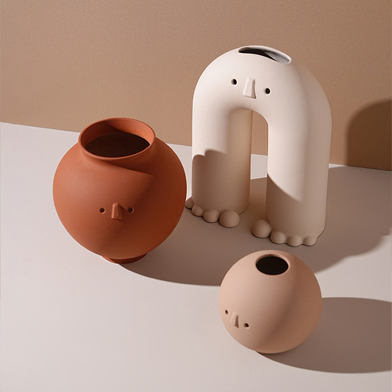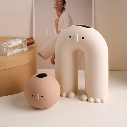 创意可爱陶瓷花瓶卡通搞怪花器小水培客厅干花插花摆件INS侘寂风