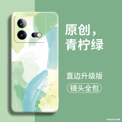 水彩适用iqooneo10手机壳neo8春樱色neo7竞速保护套9pro直边外壳vivoneo6镜头全包neo5s液态硅胶neo3高级防摔