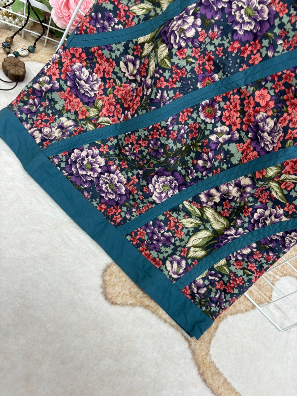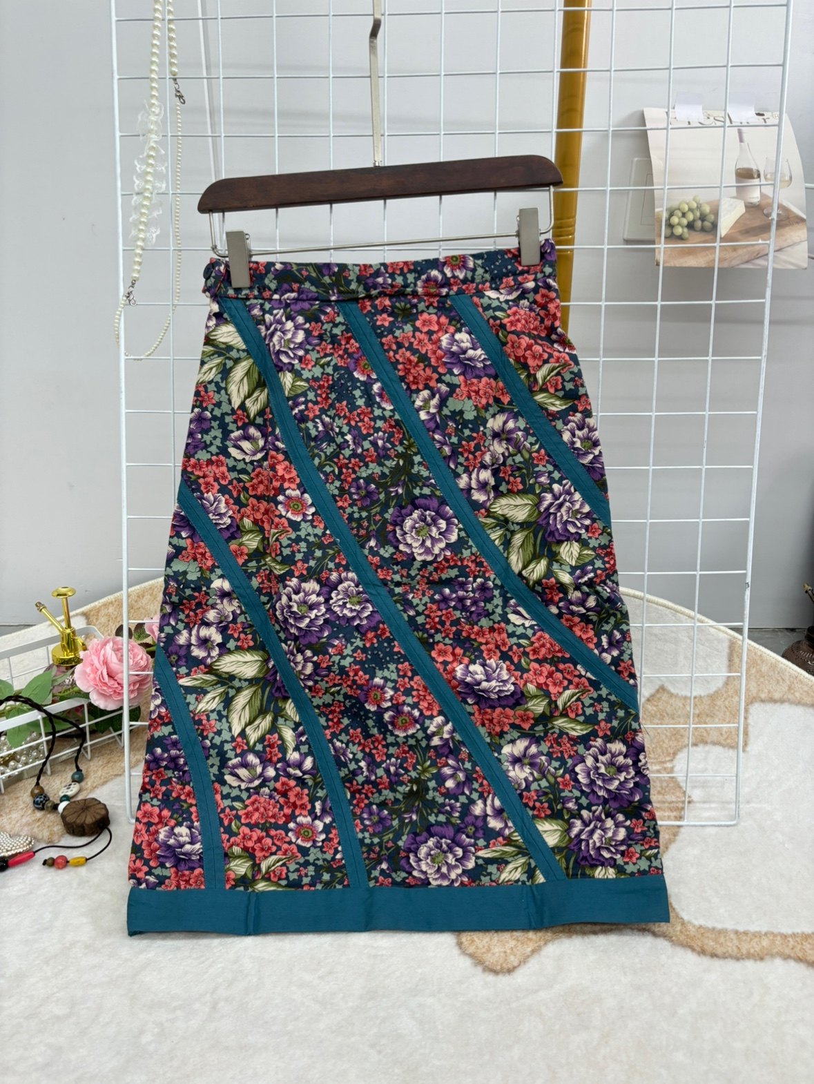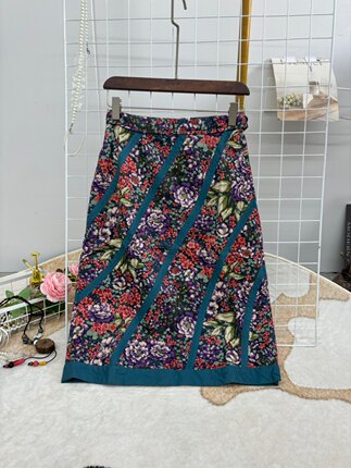 复古甜美蓝碎花2025夏季中长款印花高腰设计气质时尚半身裙显瘦