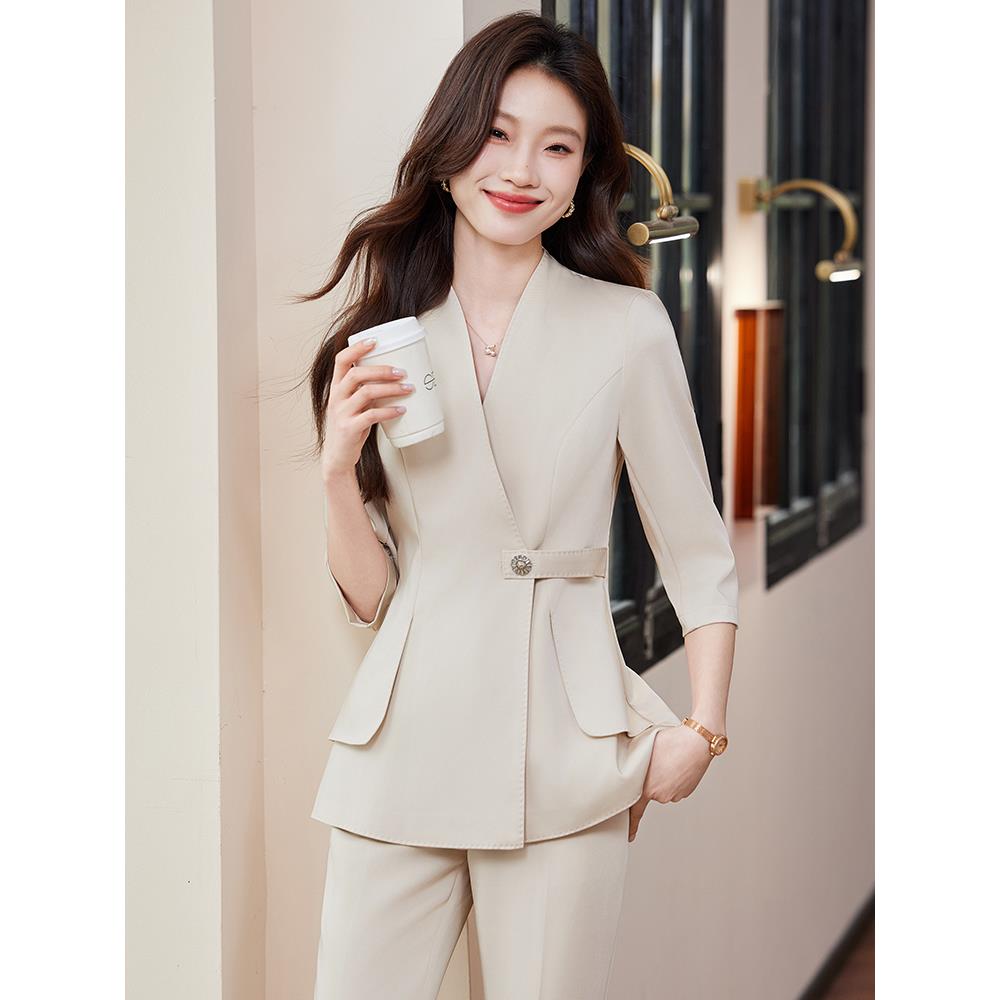 黑色夏季西装套装女薄款2025新款高级感气质职业通勤装七分袖西服