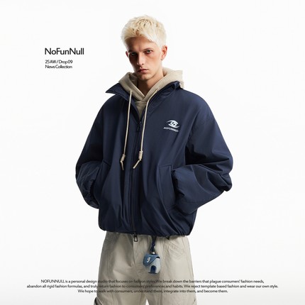 [侯明昊同款]NOFUNNULL 美式bomber立领夹克男女秋冬短款棉衣外套