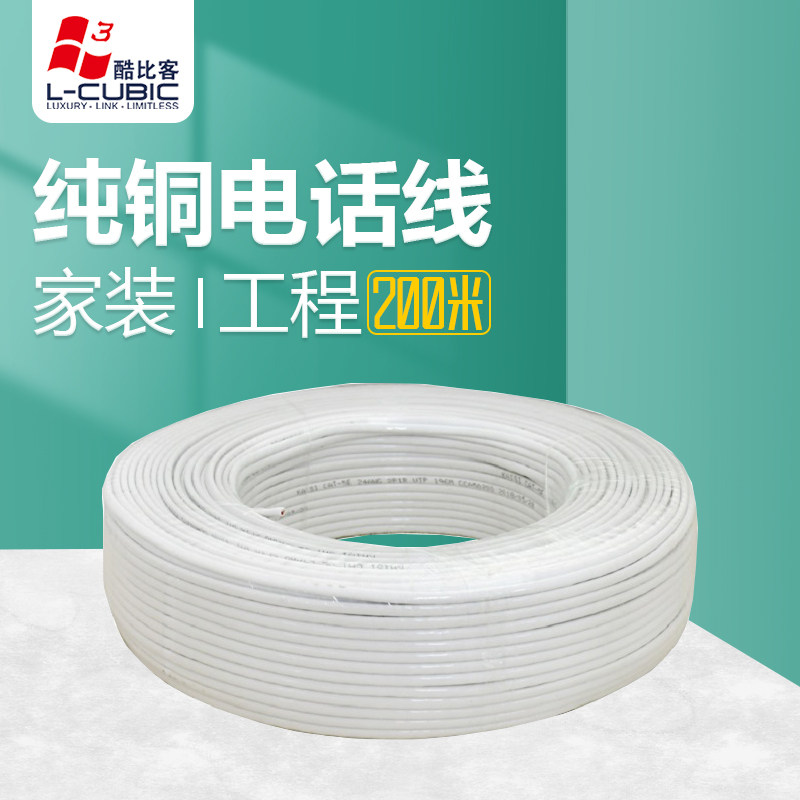 酷比客200米白色4芯纯铜电话线RJ11工程家装语音布线机房专用