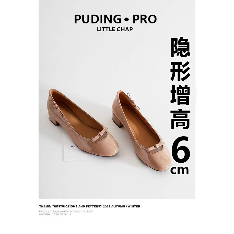 真皮版~圆头法式蝴蝶结粗跟单鞋女通勤鞋浅口一脚蹬气质玛丽珍鞋