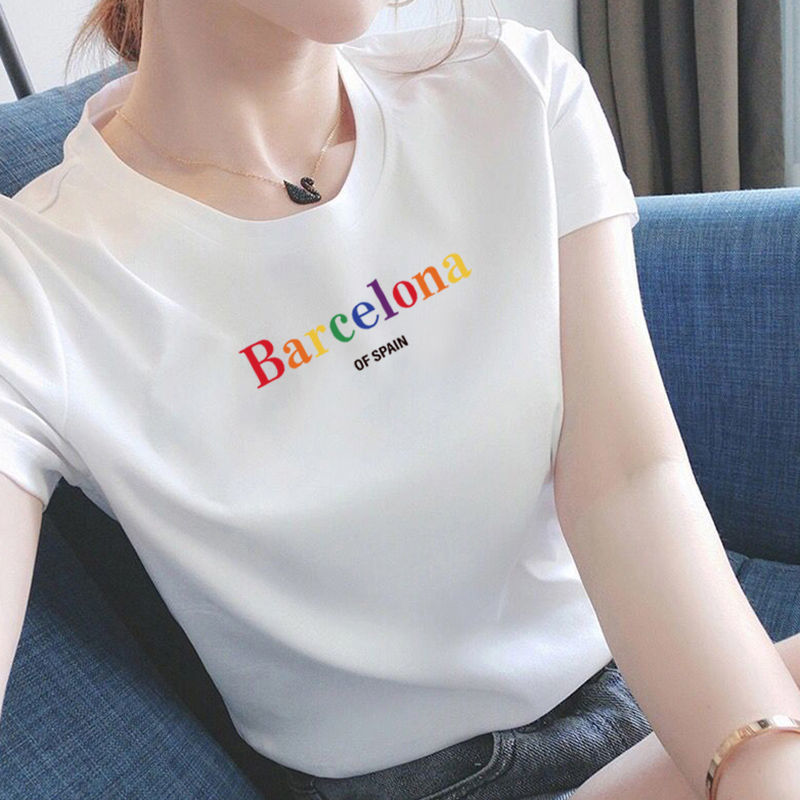 白色短袖t恤女2025新款宽松韩版ins字母大码半袖打底内搭体恤上衣