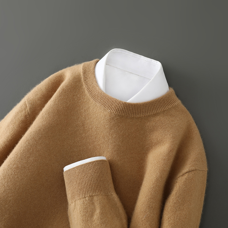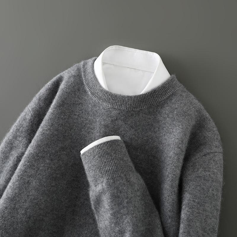 新款纯色圆领羊绒衫男士商务休闲宽松大码针织内搭长袖毛衣打底衫