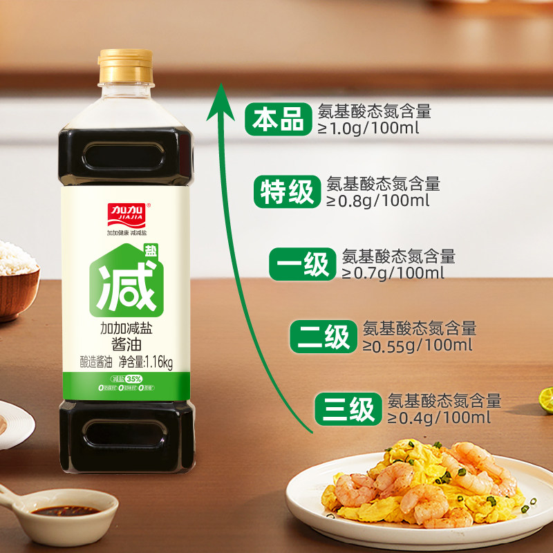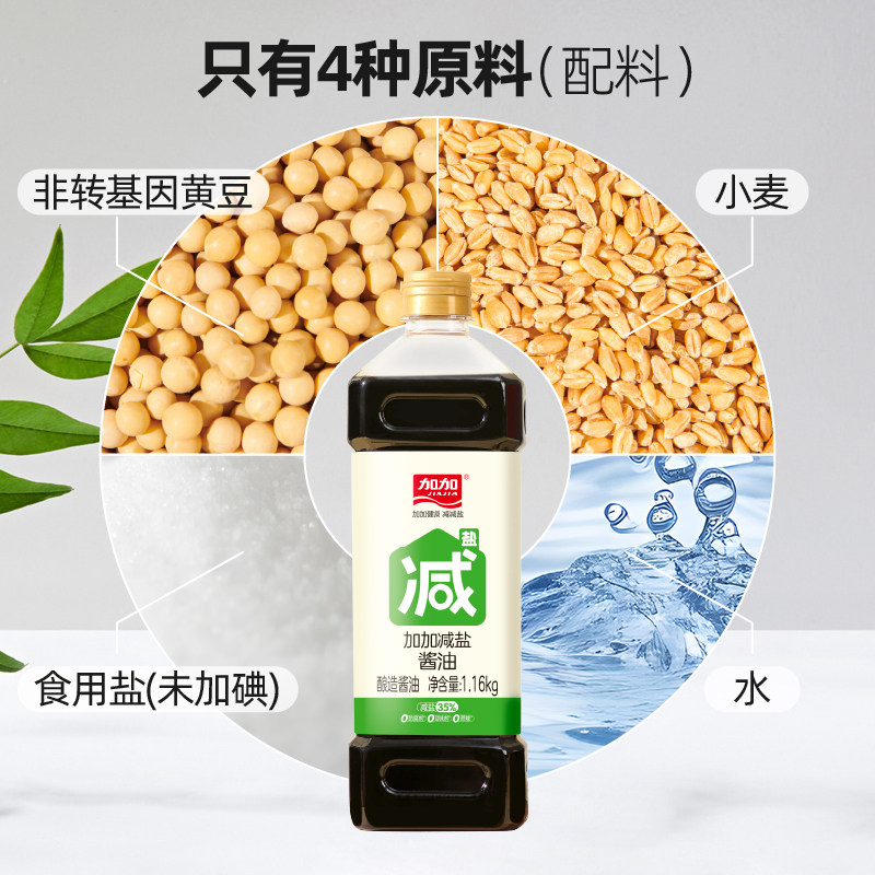 加加减盐酱油1.16kg0添加蔗糖酿造生抽减盐35%炒菜烹饪凉拌调味品