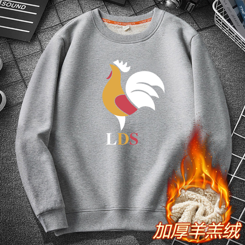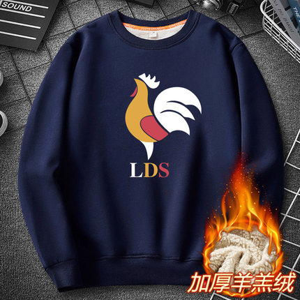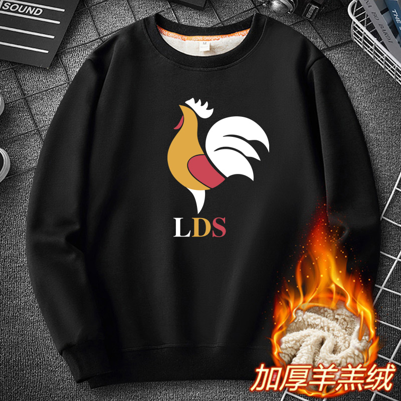 法国公鸡羊羔绒卫衣男秋冬大码加绒加厚圆领宽松冬季保暖衣上衣潮