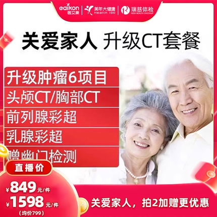 【直播专享】美年大健康瑞慈体检卡中青老年胸部CT头颅CT全家通用