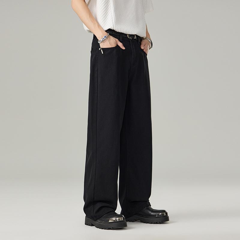 it秋季新款美式复古牛仔裤男装直筒阔腿休闲黑色裤子男士宽松长裤