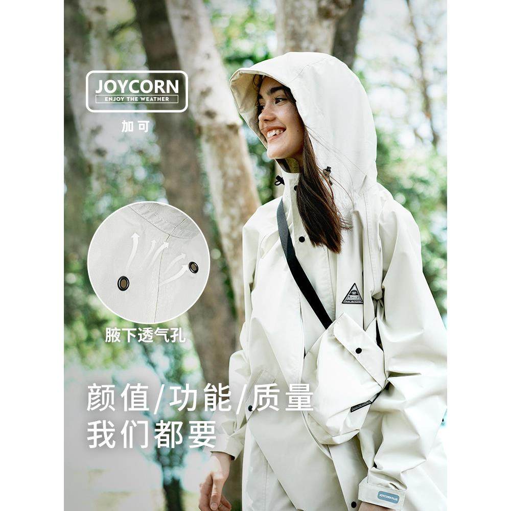 Joycorn加可雨衣女风衣中长款防雨服 透气户外徒步电动车雨披白色