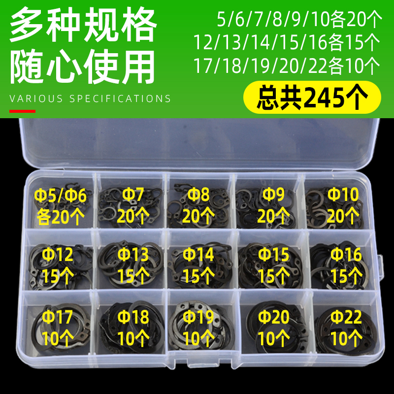 轴用挡圈卡簧C卡E卡孔卡六角螺母螺丝帽平垫片弹垫圈华司介子套装