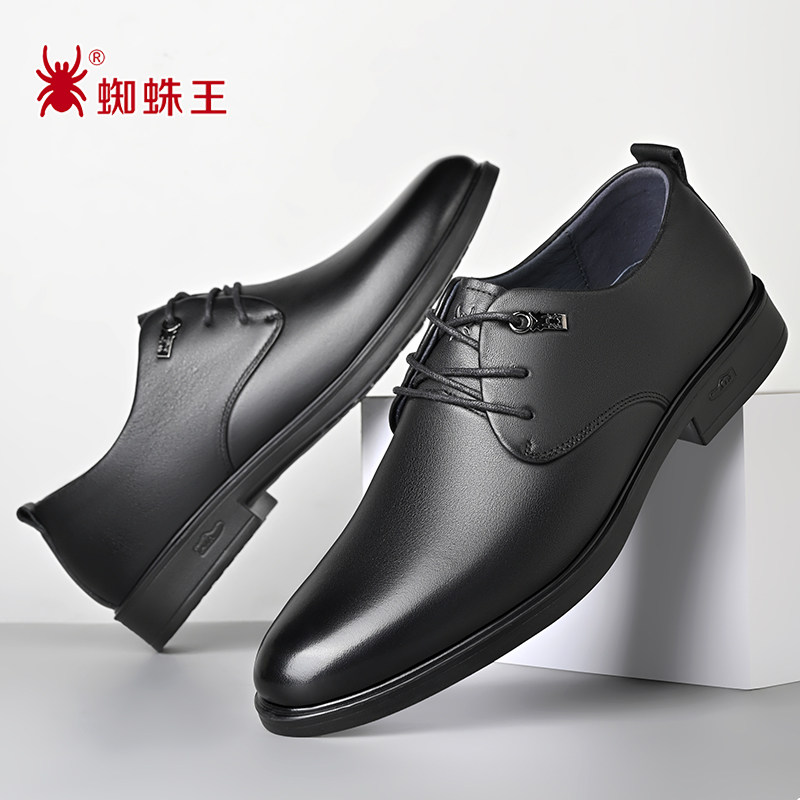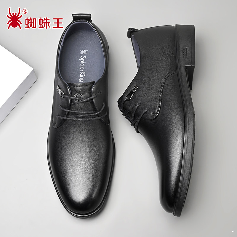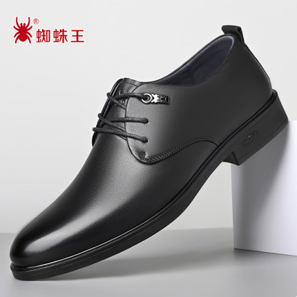 蜘蛛王男鞋春季新款商务正装皮鞋男士真皮软皮软底结婚德比鞋透气
