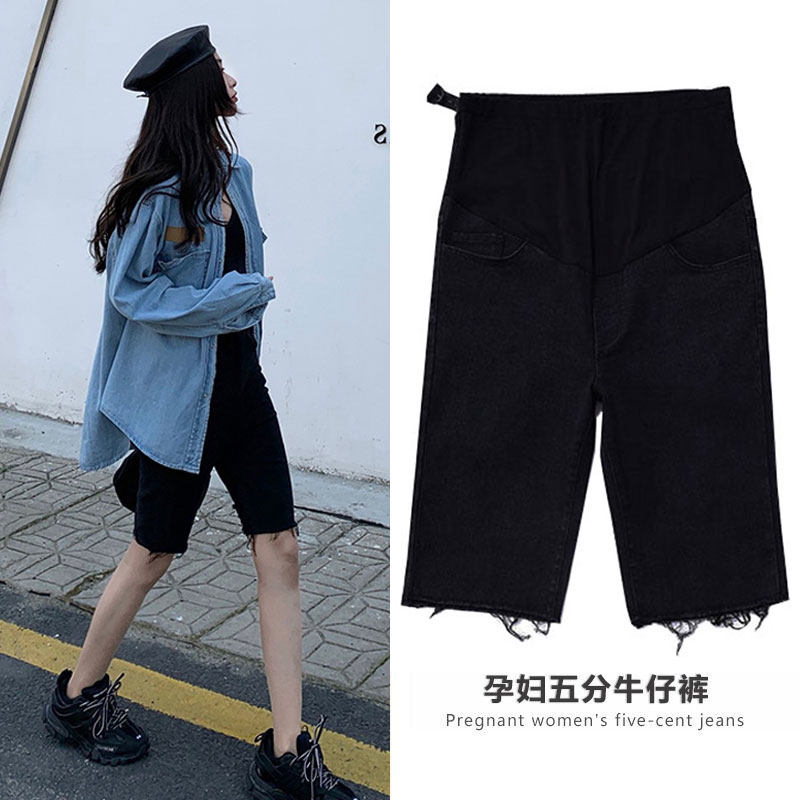 孕妇牛仔短裤子春秋款时尚骑行五分裤外穿女春夏季薄款黑灰打底裤