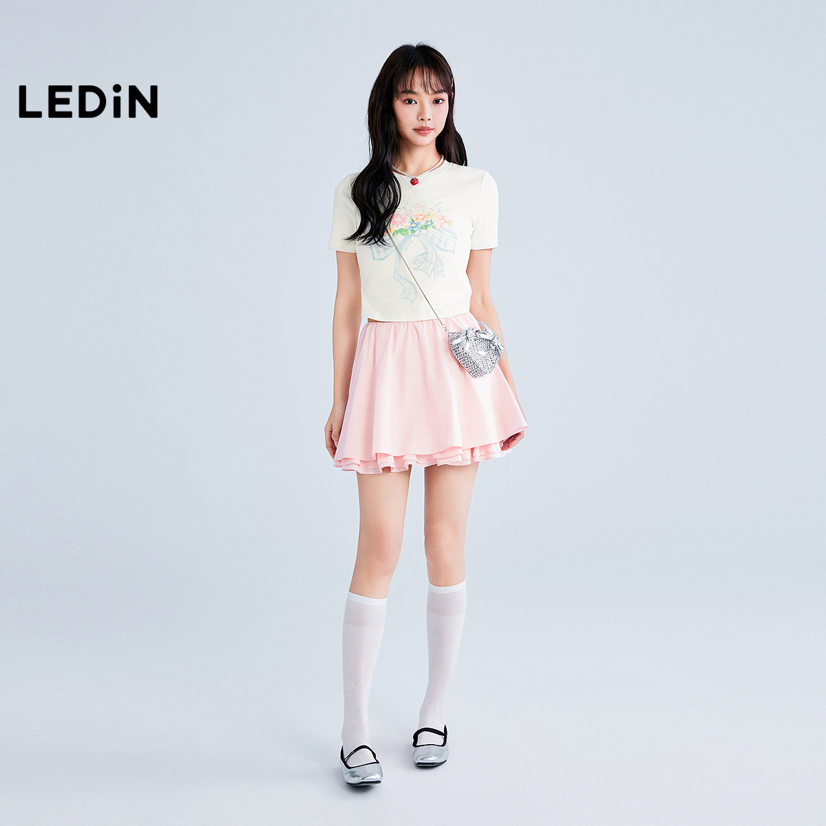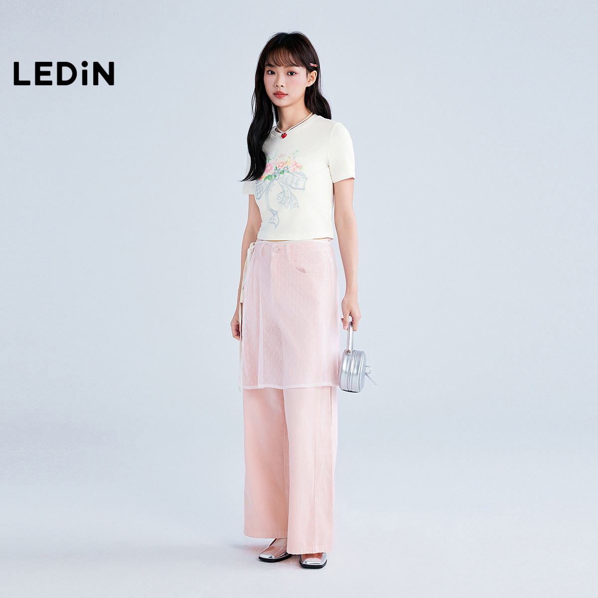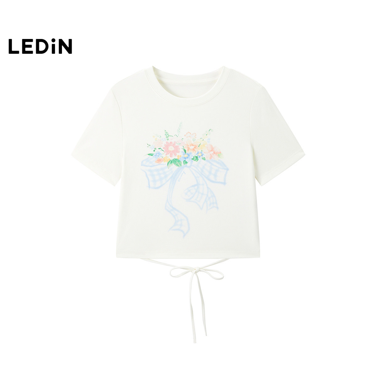 【商场同款】乐町设计感系带短袖女夏季新款水彩花卉T恤C1CNF2604