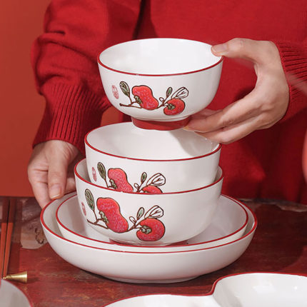 顺祥陶瓷中式碗碟套装家用釉下彩高温餐具乔迁新居碗盘2025新款