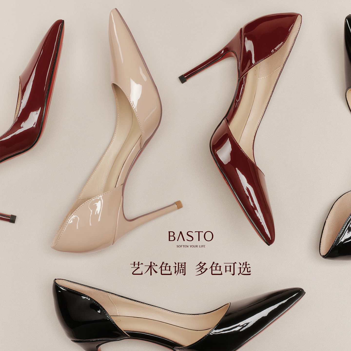 百思图2026夏季商场新款气质红色裸色高跟鞋绝美女单鞋CU707BQ6