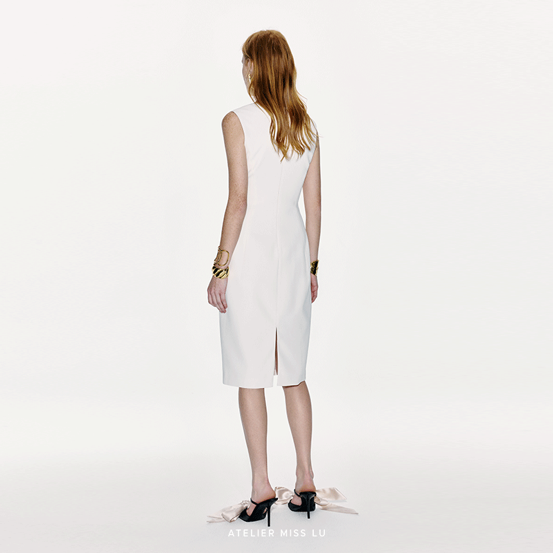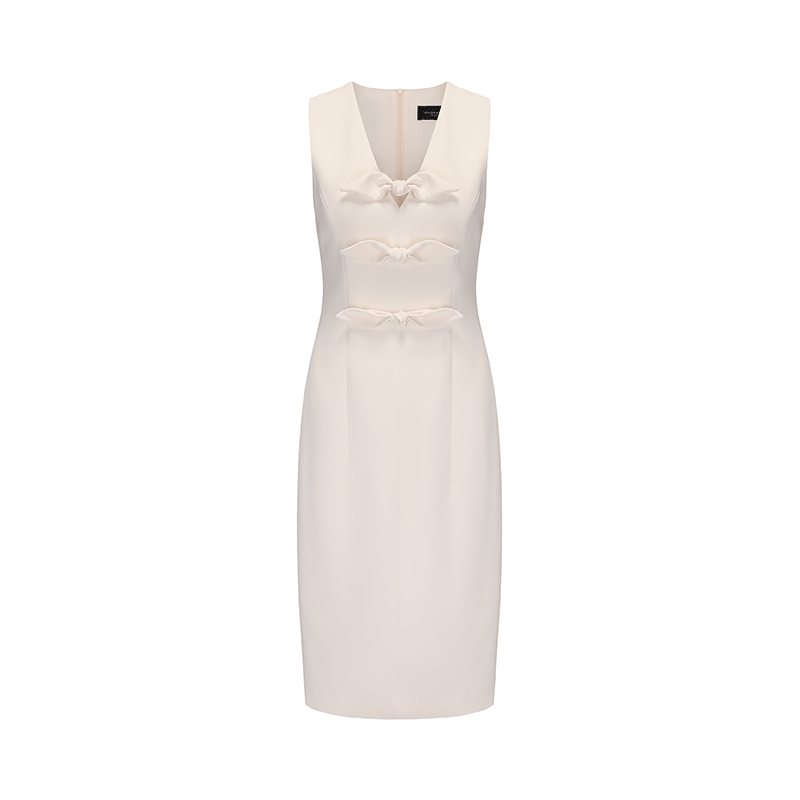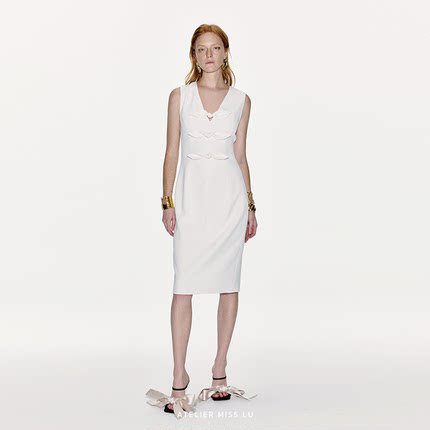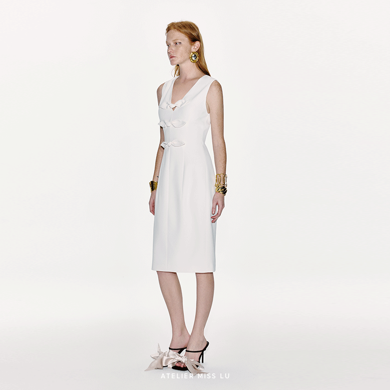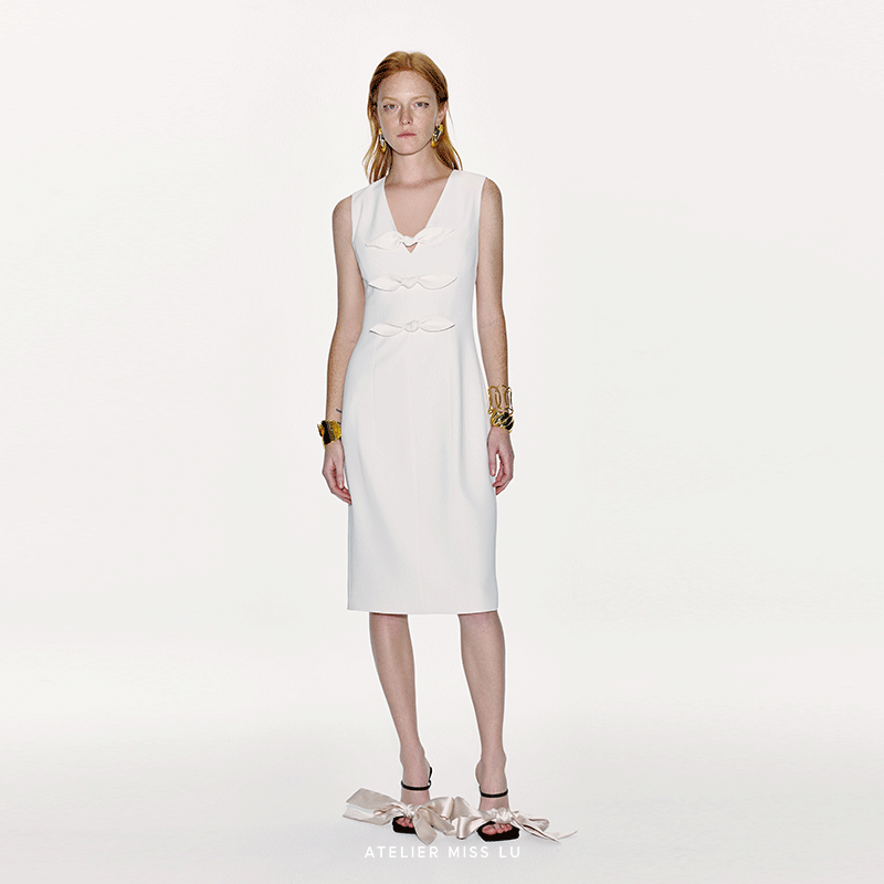 AtelierMissLu【最初的告白】2025春夏蝴蝶结拼接收腰无袖连衣裙