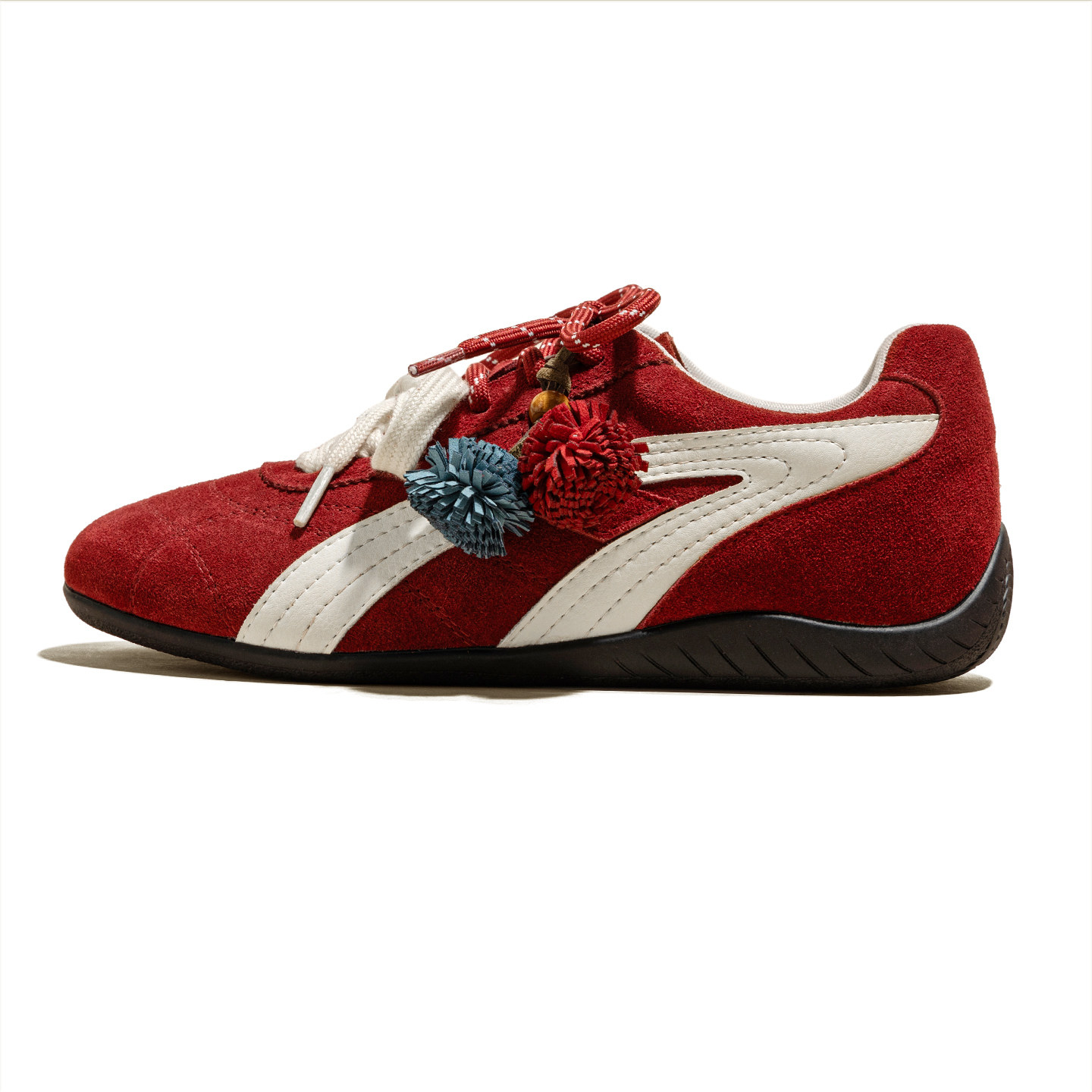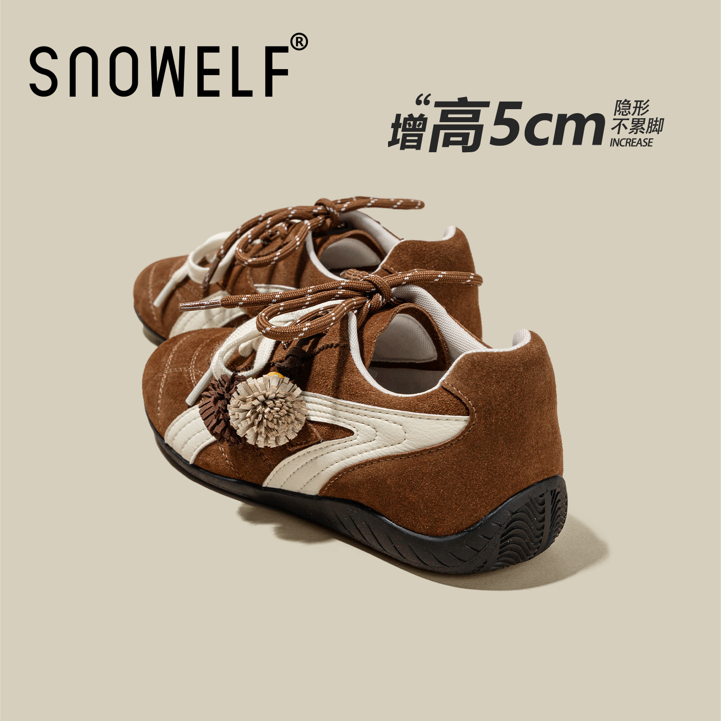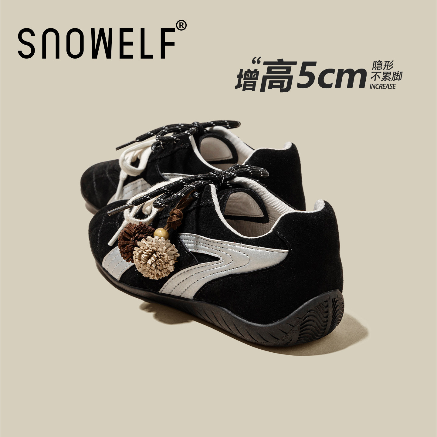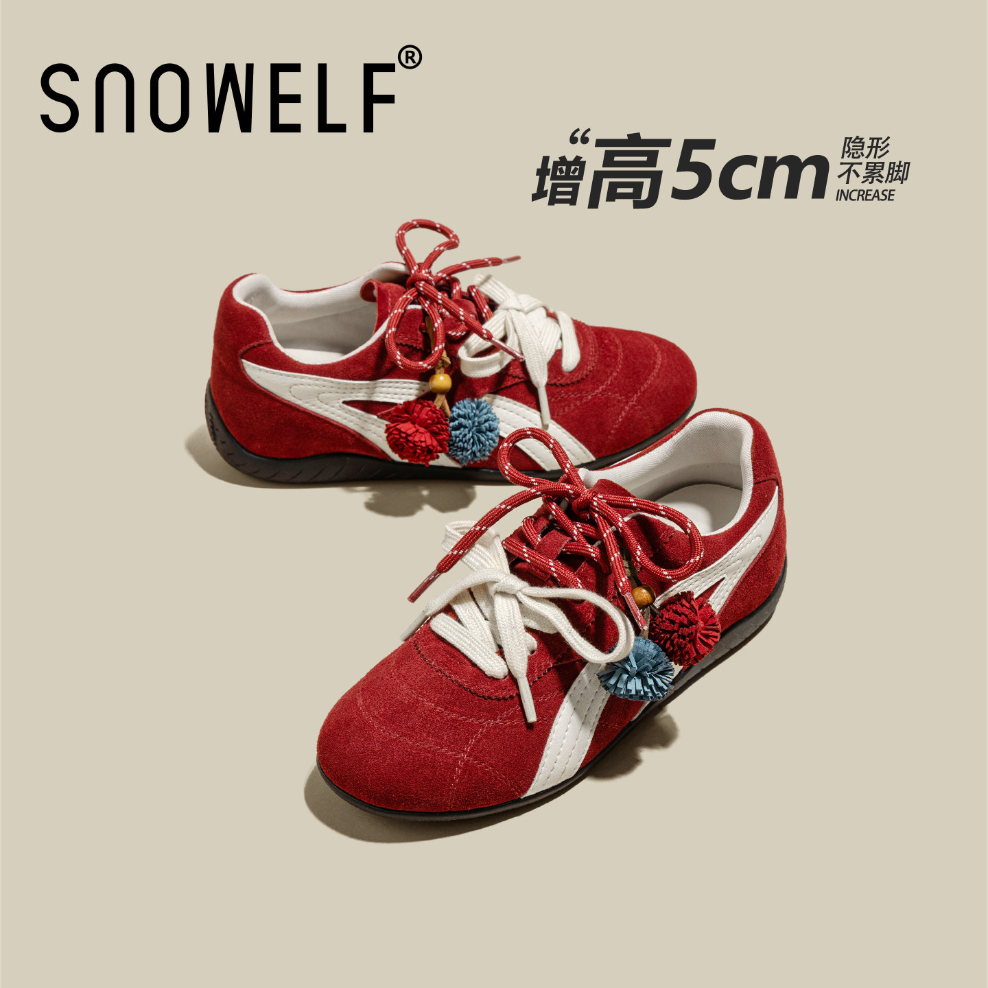 真皮红色德训鞋女款2025新款秋季百搭内增高运动休闲鞋软底女鞋子