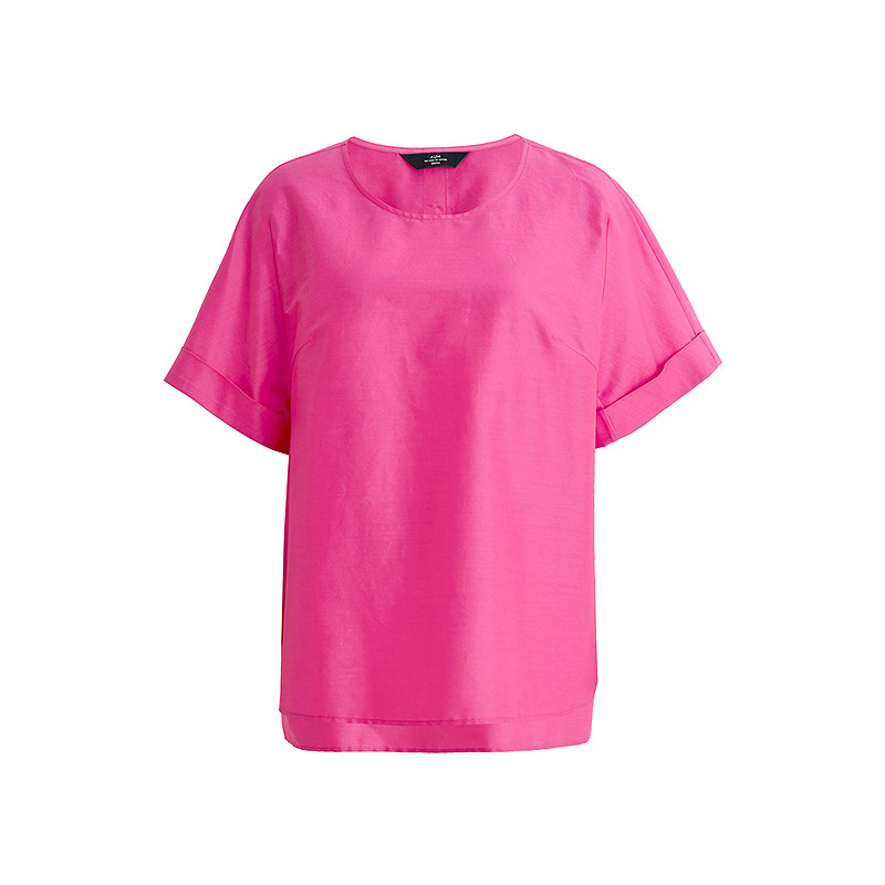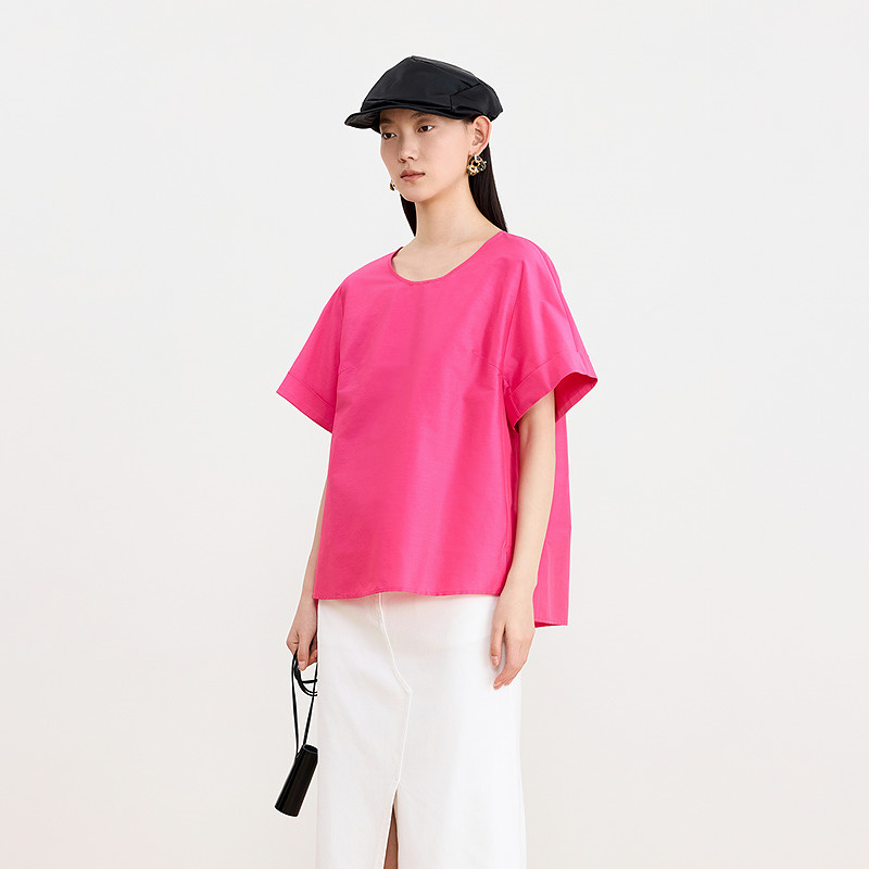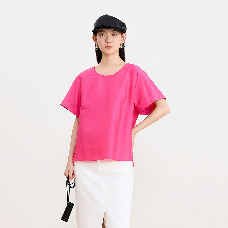 【商场同款】AUM噢姆夏季弹力亮色圆领宽松玫红连袖休闲上衣女款