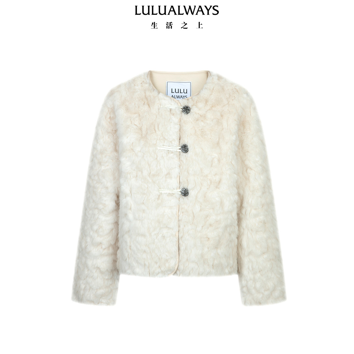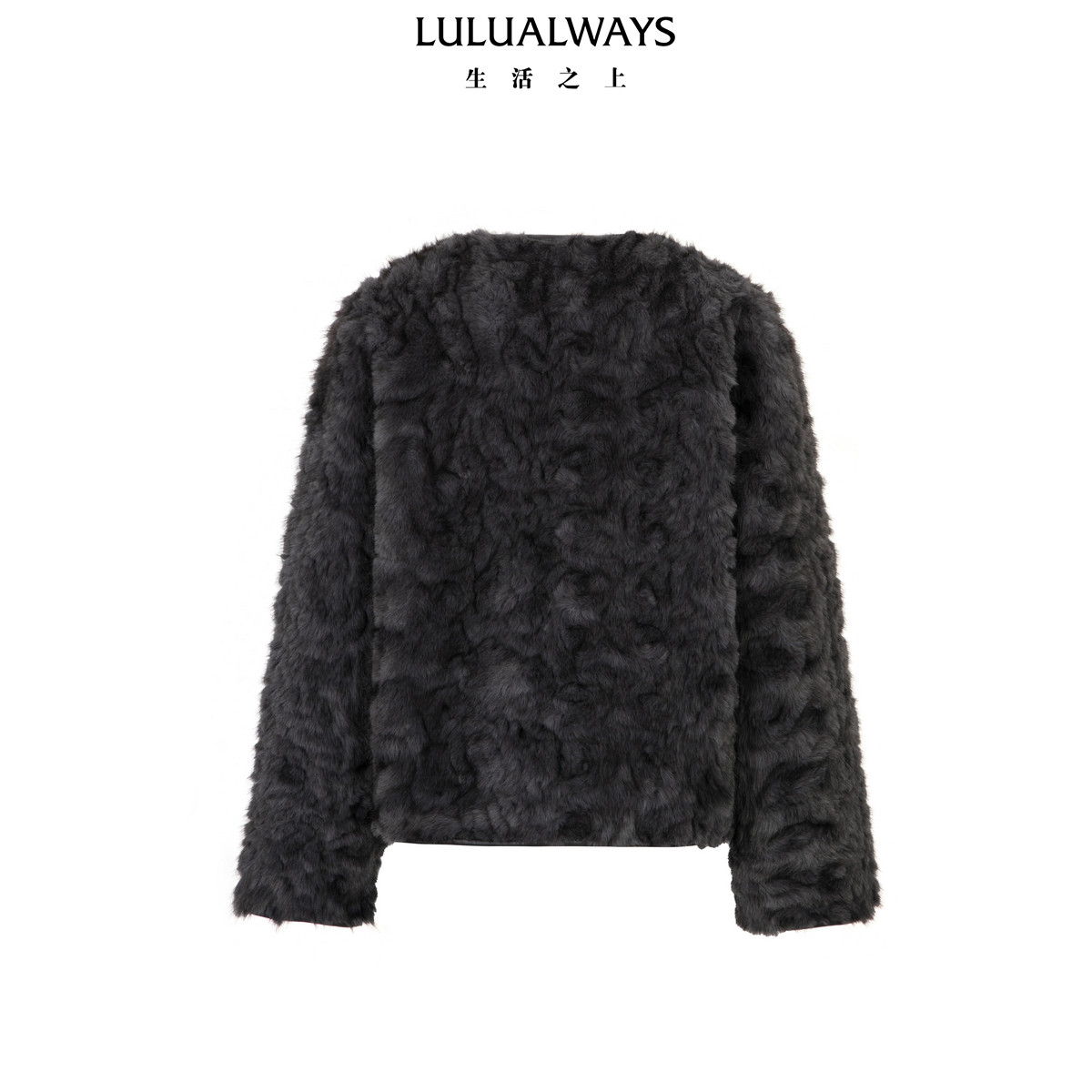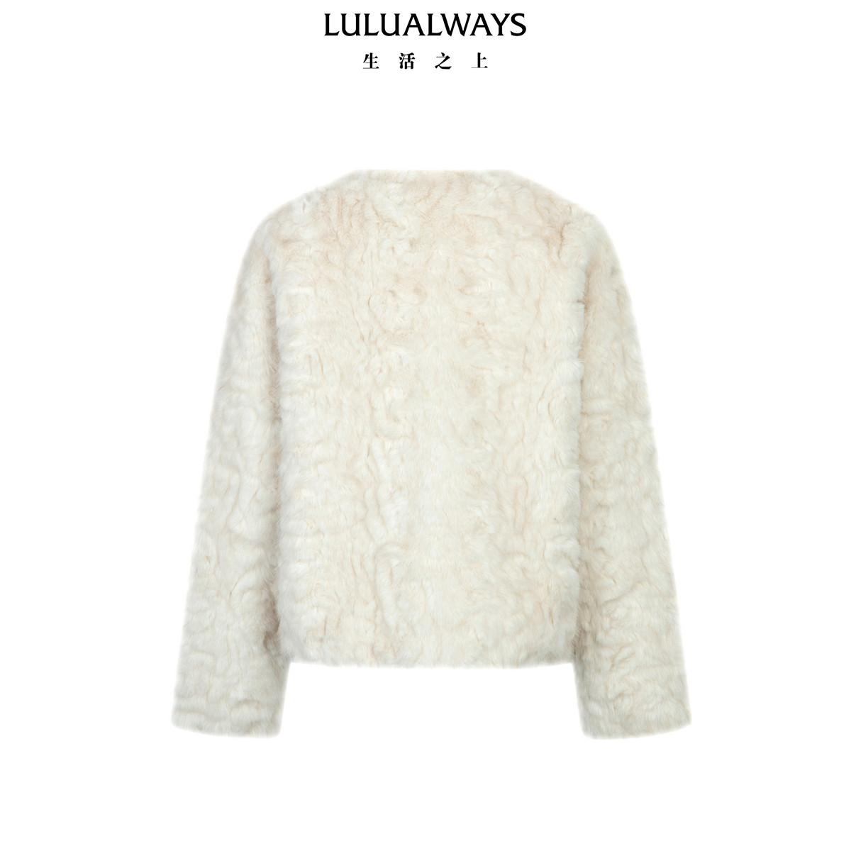 LULUALWAYS我爱露露26春季新款小香风纯色仿皮草圆领毛绒短款外套