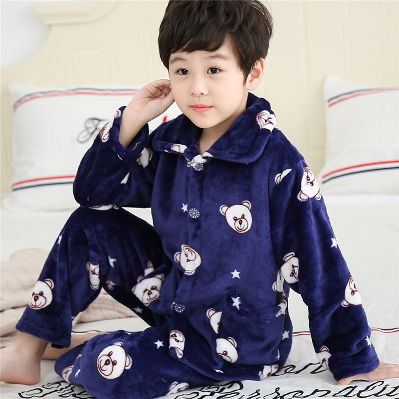 秋冬季加厚款珊瑚绒小孩大童睡衣