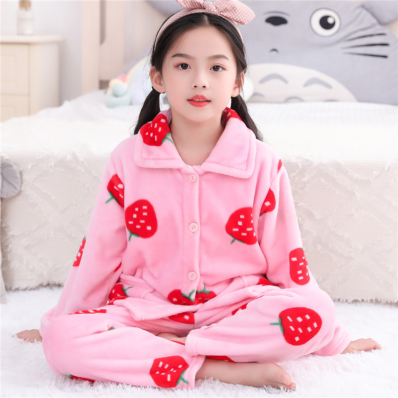 秋冬季儿童睡衣加厚款珊瑚绒男童女童长袖小孩大童宝宝法兰绒套装