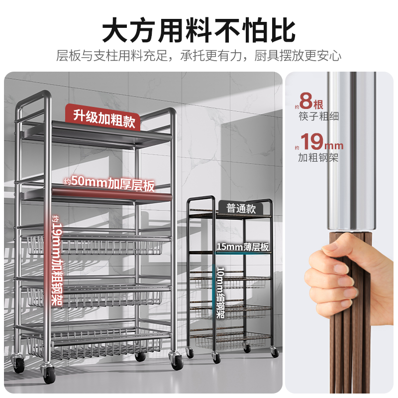 不锈钢厨房菜篮子置物架落地多层果蔬微波炉收纳架多功能储物架子