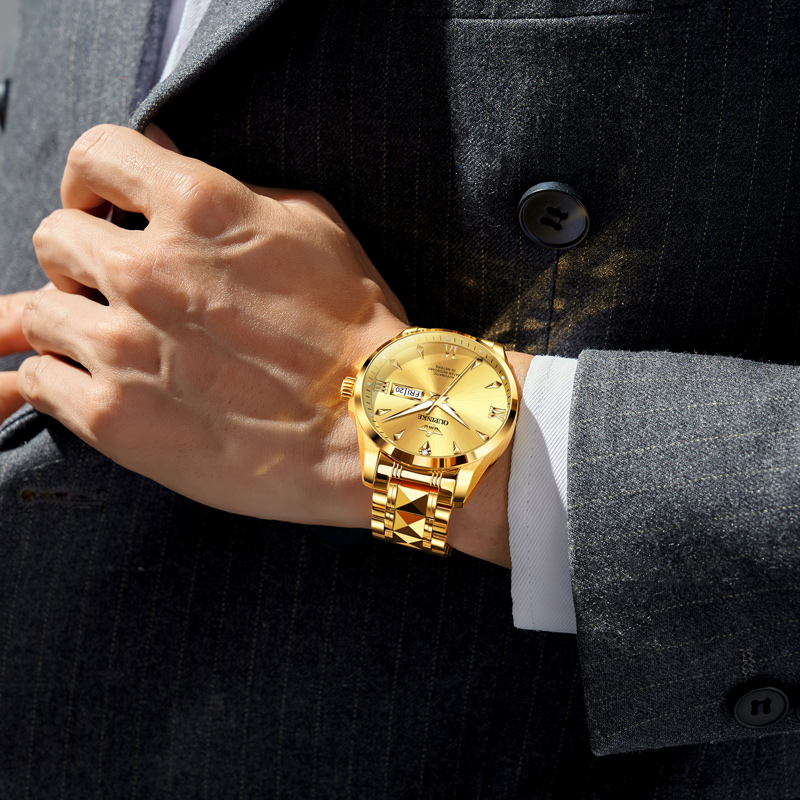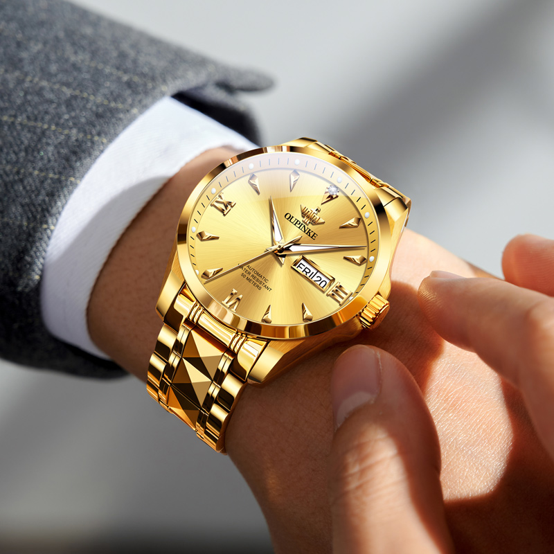 天然真钻24k全金色手表男士官方瑞士欧品客正品牌全自动机械腕表