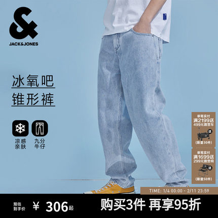 杰克琼斯凉感宽松锥形牛仔裤