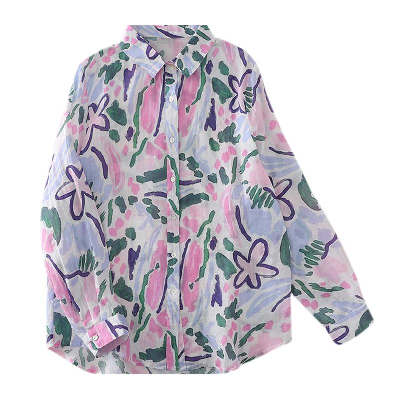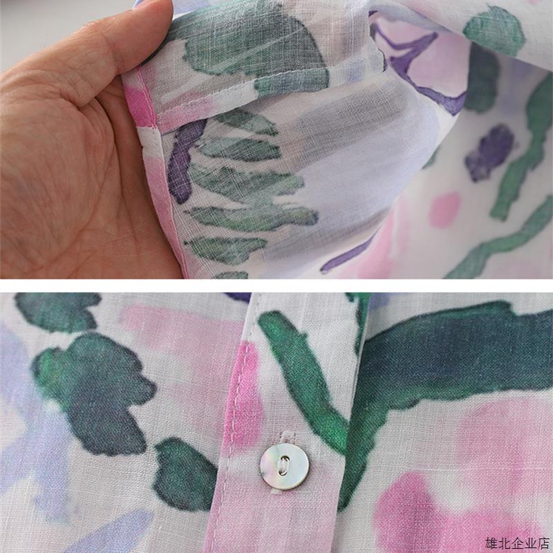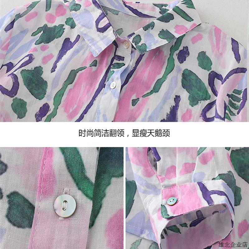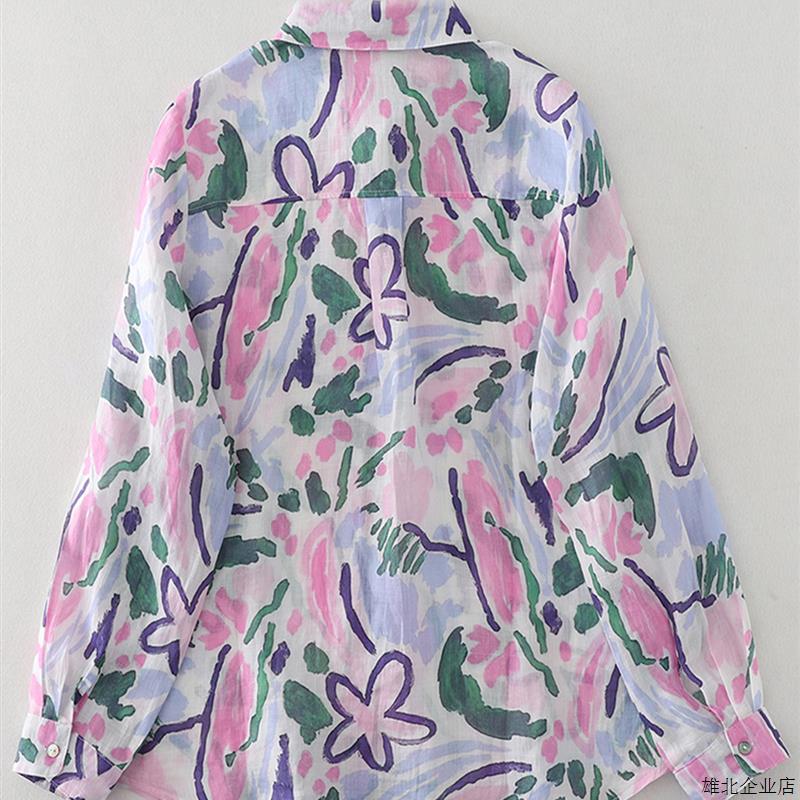 覆古时尚棉麻碎花衬衫女秋季宽松长袖衬衣原创设计感薄款打底上衣
