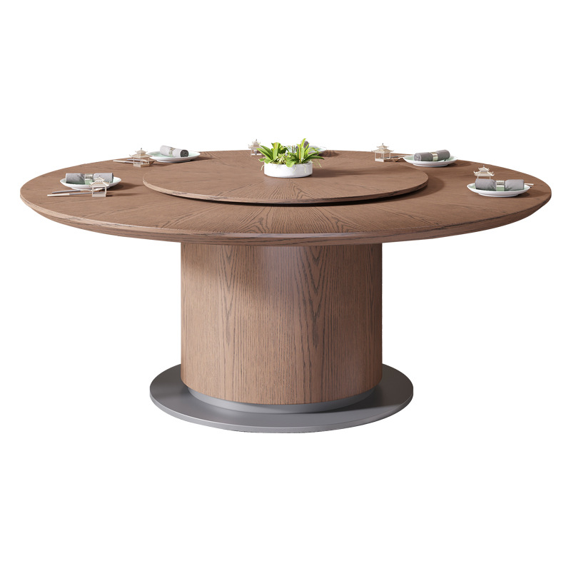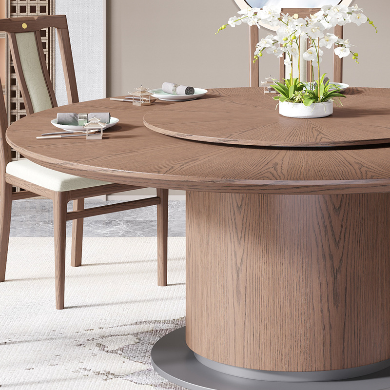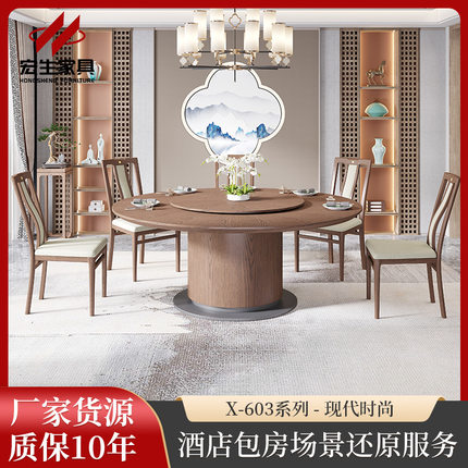 新中式实木圆形餐桌带转盘10人商用大圆桌吃饭桌圆餐桌椅组合厂家