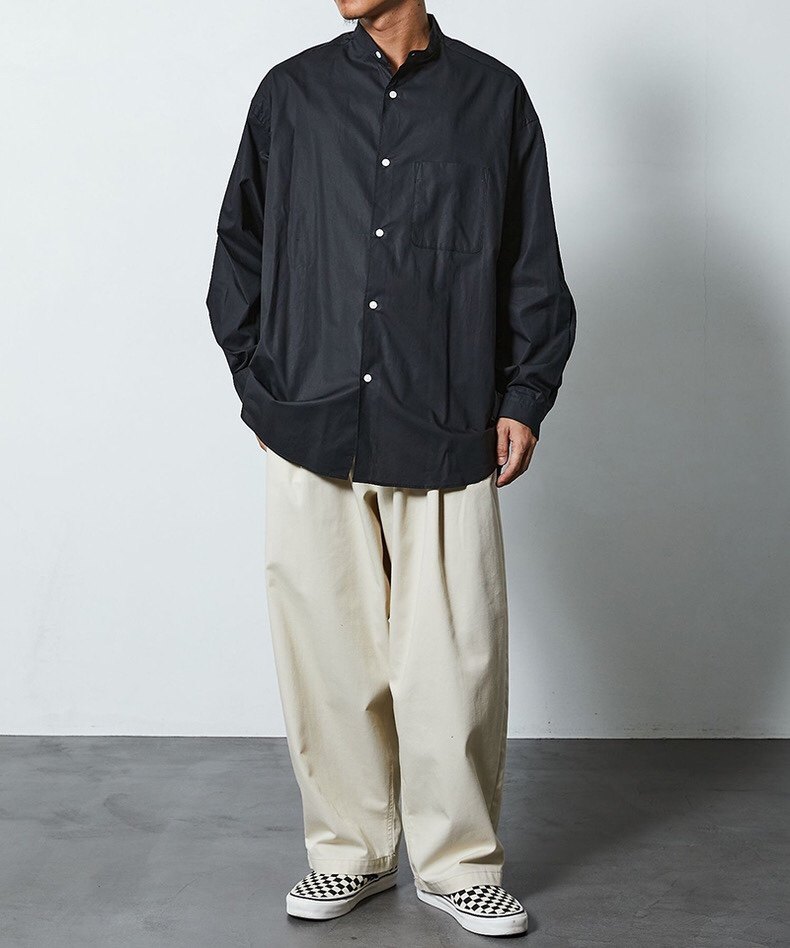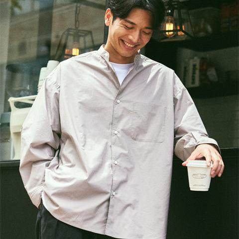 freaks store24秋新款立领全棉丝光男士长袖休闲廓形衬衫青春新色
