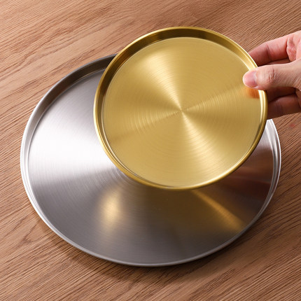 日式不锈钢圆盘平底浅盘子大托盘