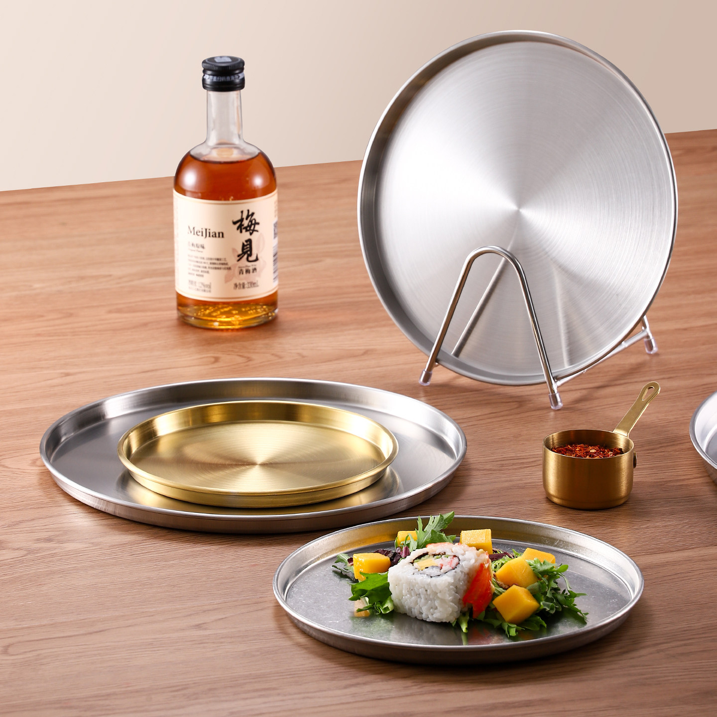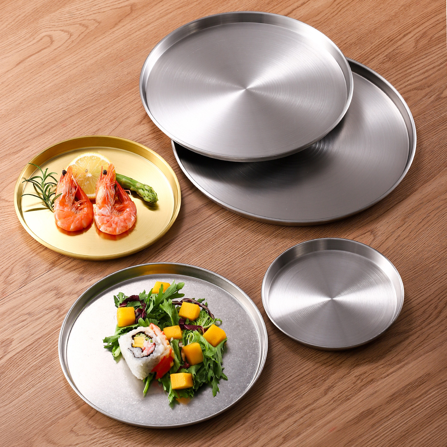 日式不锈钢圆盘平底浅盘子托盘骨碟商用烤肉菜盘水果盘甜品蛋糕盘