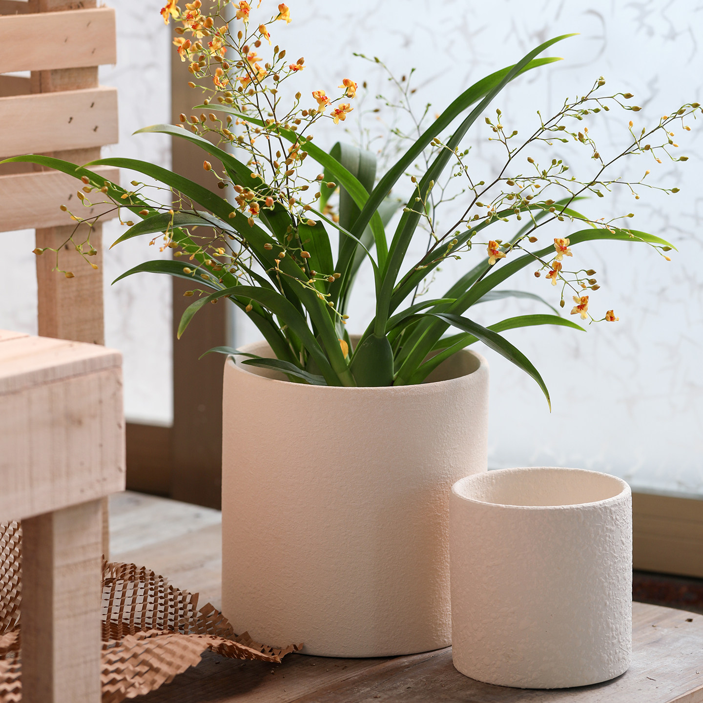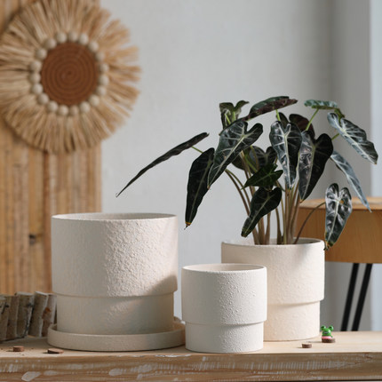 陶泥浆粗面素烧白陶土花盆大小号