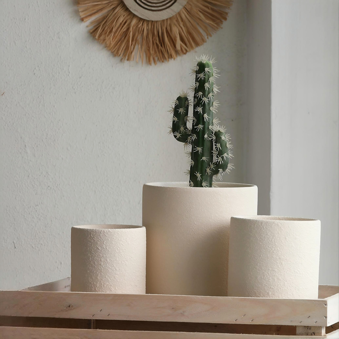 粗陶素烧陶瓷胚花盆陶泥浆粗面圆形透气白陶土带托盘多肉绿植盆栽