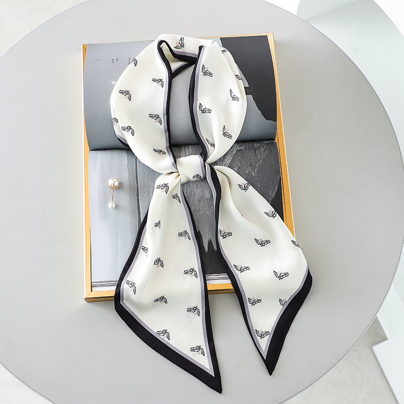 黑白小丝巾女窄长条丝带内搭配衬衫风衣西装领带春秋职业装饰发带
