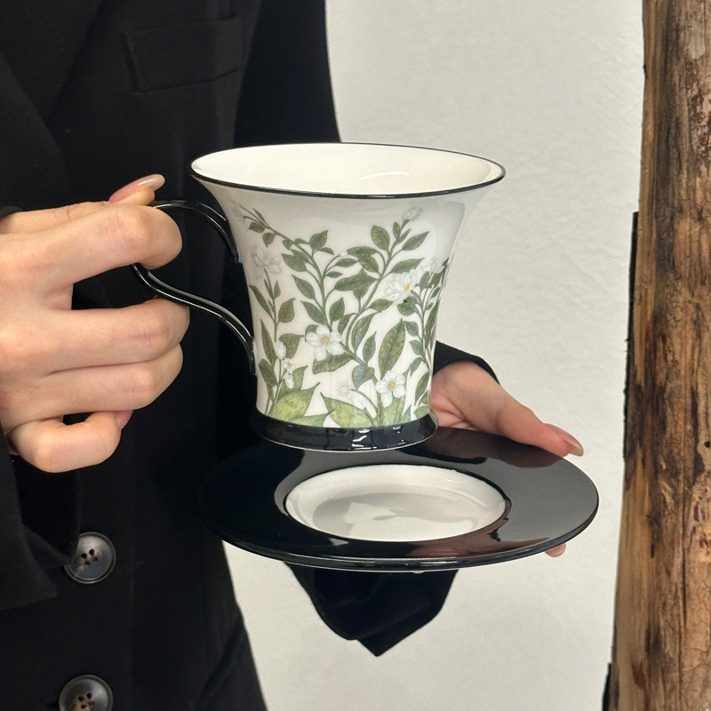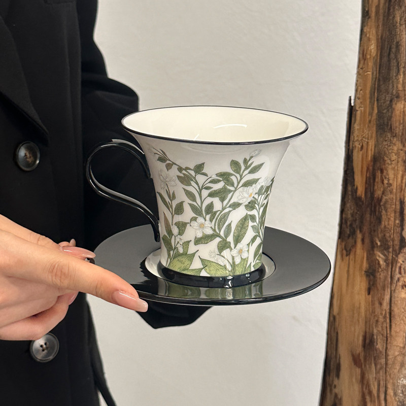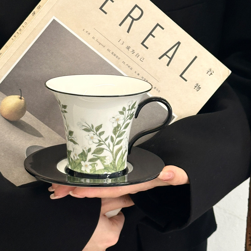 复古油画般茉莉花咖啡杯碟套装陶瓷下午茶杯礼盒装高级感伴手礼品