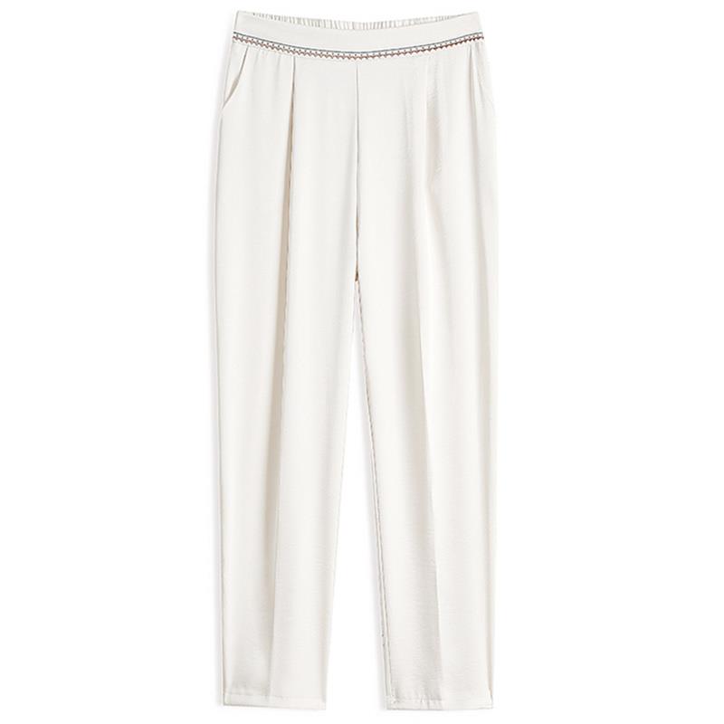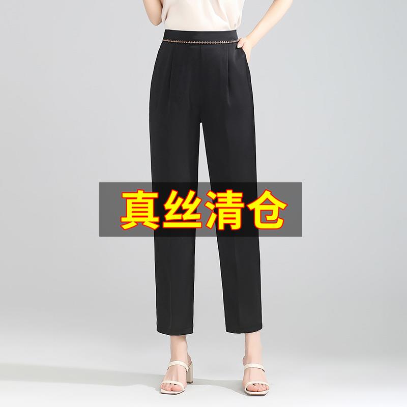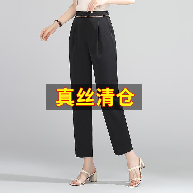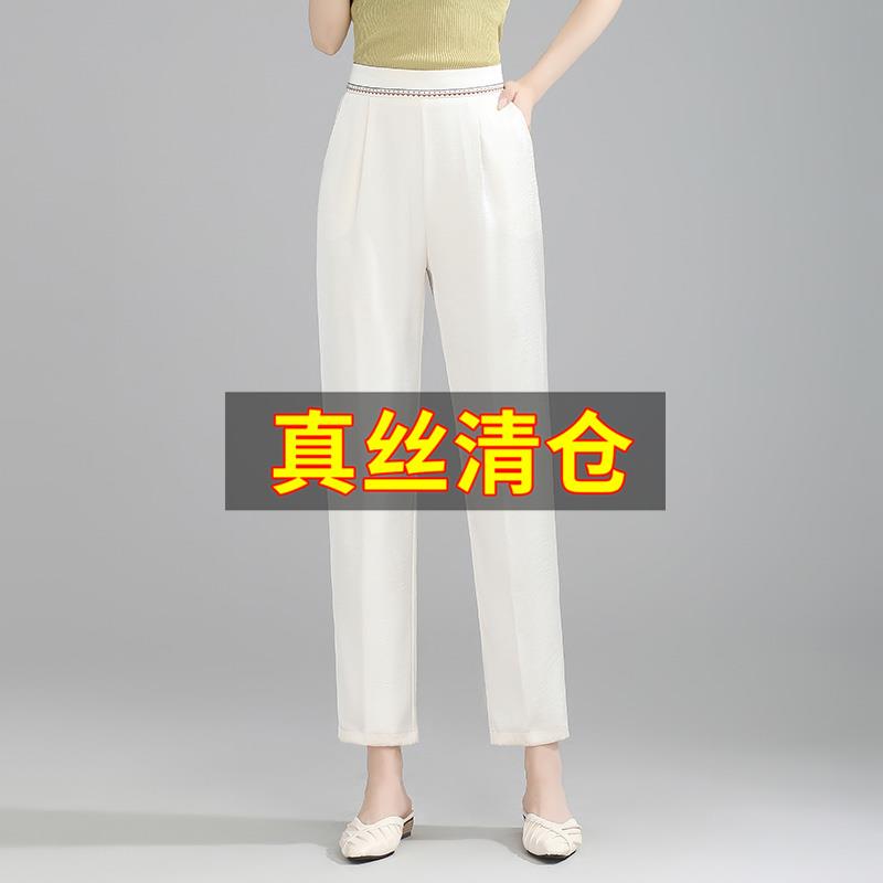 妈妈桑蚕丝女裤真丝八分九分白色绣花裤子女2024新款爆款哈伦裤夏