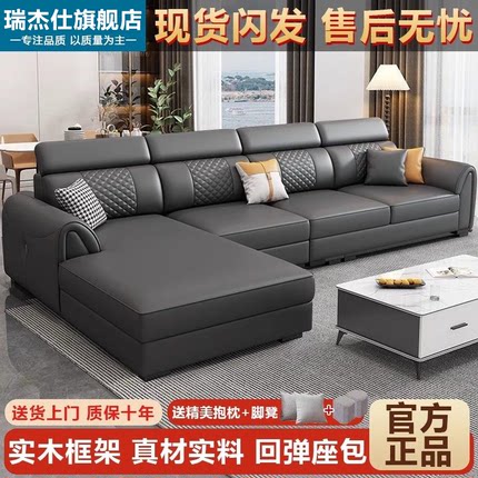 北欧实木沙发猫爪皮现代简约客厅小户型免洗客厅皮艺贵妃组合新款